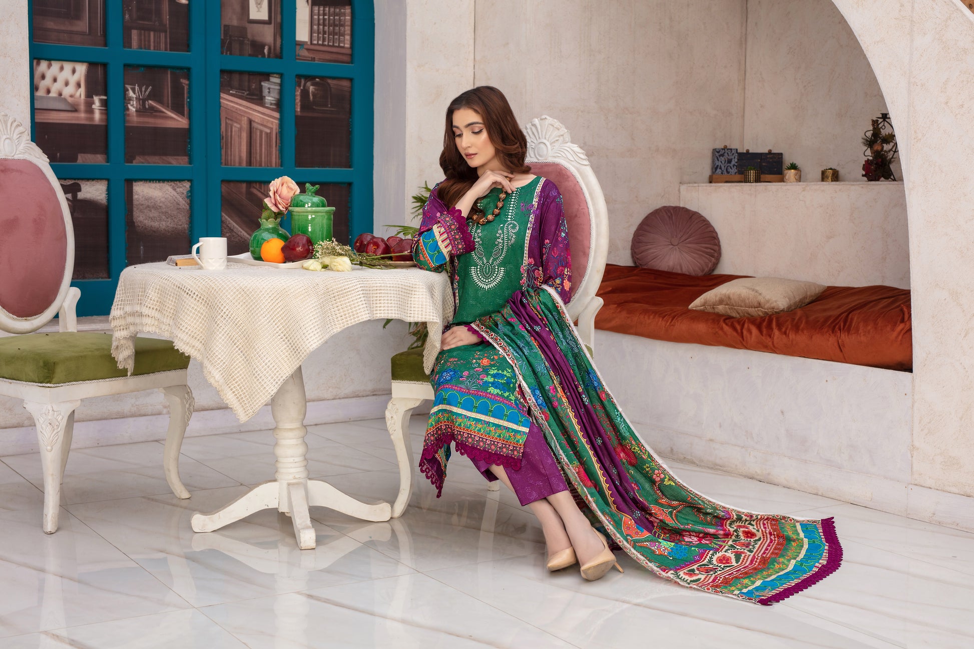 Zafira- 03 Piece Unstitched Digital Print with Lawn Dupatta