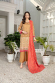 Amber exudes elegance and warmth with its soft amber tones and detailed embroidery. The outfit features a shirt and back crafted from 2.5 meters of slub lawn fabric, providing a comfortable and stylish fit. The 26-inch sleeves add a touch of sophistication to the ensemble. The trousers, made from 2.25 meters of lawn fabric, ensure both comfort and a sleek look.