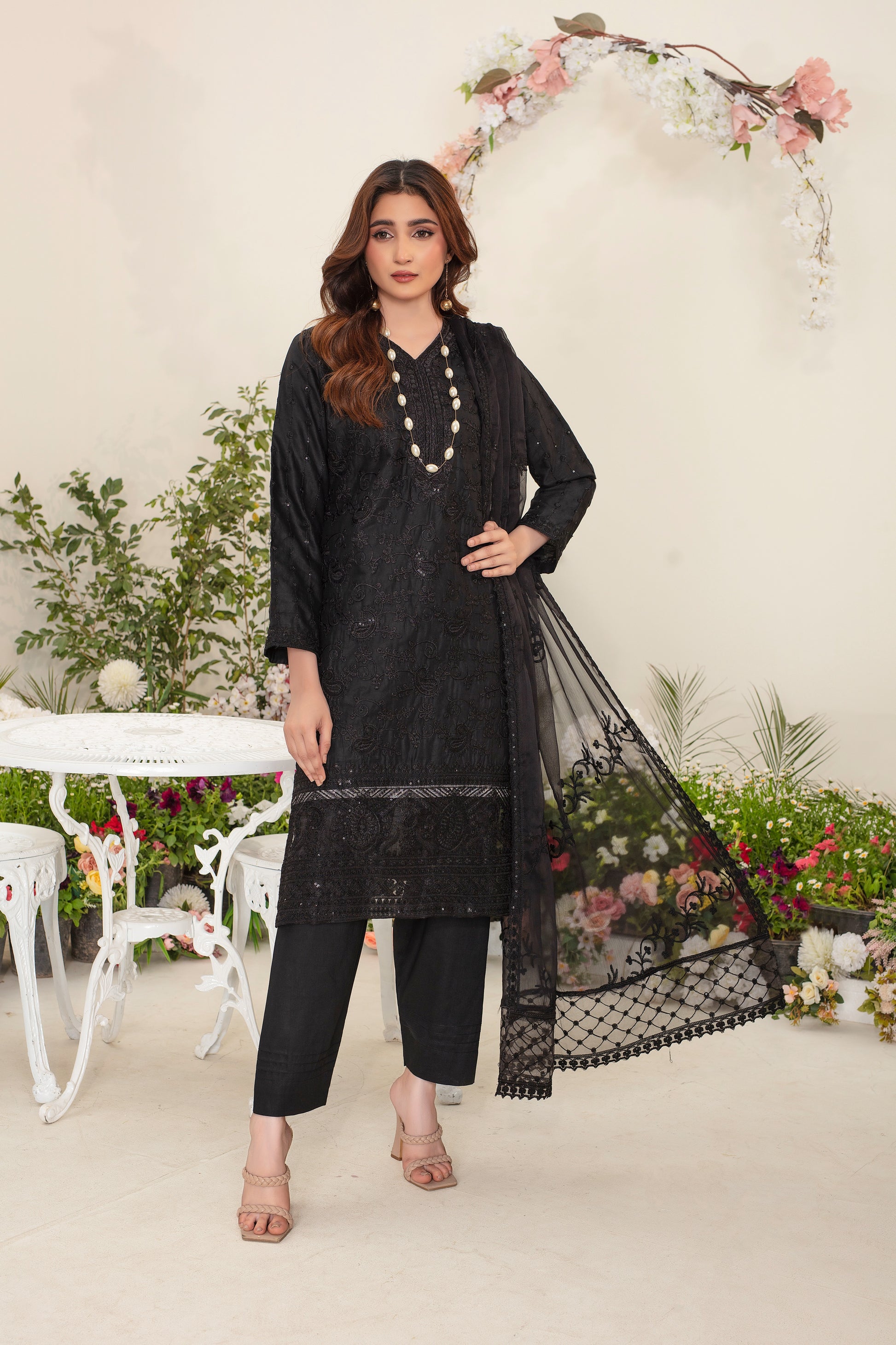 captures a blend of traditional elegance and modern style with its striking combination. The outfit features a shirt and back crafted from 2.5 meters of slub lawn fabric, providing a breathable and stylish fit. The 26-inch sleeves add a refined touch to the overall look. The trousers, made from 2.25 meters of lawn fabric, offer comfort and sophistication.