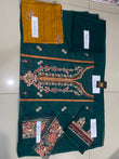 The intricately embroidered 35-inch shirt patch adds a touch of luxury to the outfit. Completing the look is a 2.25-meter Rangoli dupatta, featuring a vibrant orange hue that perfectly contrasts with the green, adding a splash of color and charm. Jade is perfect for festive occasions or casual wear, embodying timeless beauty and elegance.