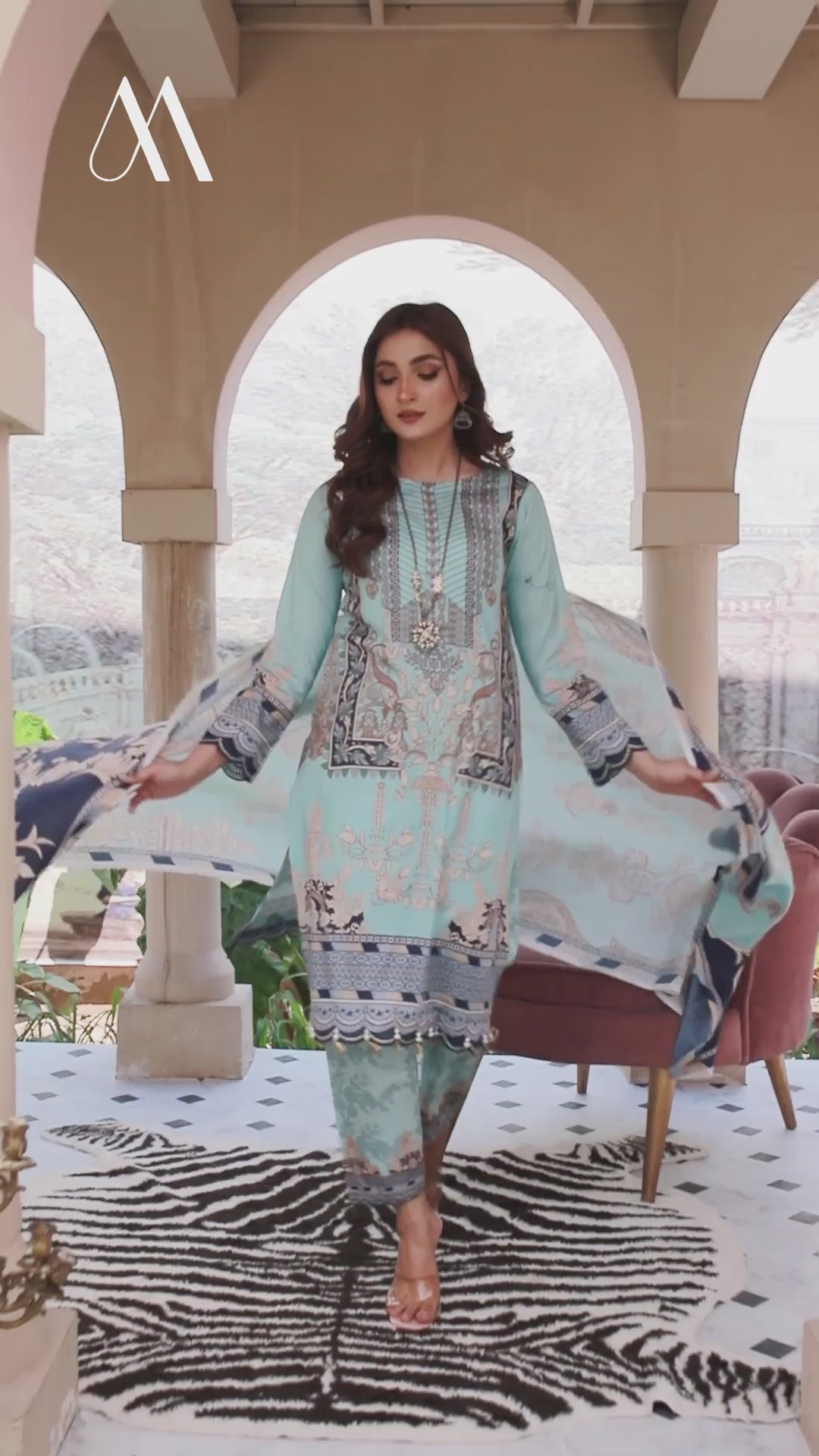 Oasis – A premium 3-piece digital print suit on soft Dhanak fabric. Perfectly crafted for a graceful winter look, combining comfort, warmth and timeless elegance