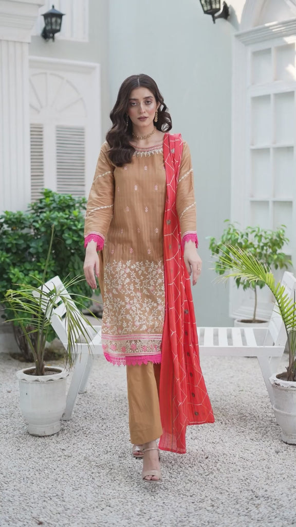 Amber exudes elegance and warmth with its soft amber tones and detailed embroidery. The outfit features a shirt and back crafted from 2.5 meters of slub lawn fabric, providing a comfortable...