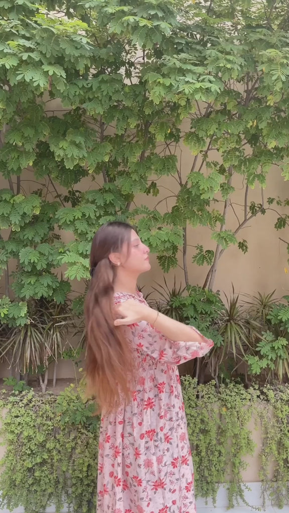 Amour:  Fabric: Cotton/Lawn This light and airy long lawn dress is perfect for warm weather. The fabric features a soft, cream background with vibrant red and pink floral patterns scattered across....
